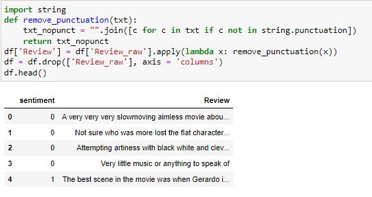 Firs we load the data set into the program and convert the txt file to csv file. This dataset consists of 362 negative reviews and 386 positive reviews. As the reviews have punctuation in it, we need to clean the data and remove the punctuation.